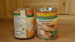 콘솔란(Consolan)은 수용성 스테인으로 냄새가 심하지 않아 내부 가구 등에 사용하는 수성 스테인으로 독일에서 환경 승인을 받은 제품이다. 내광성, 방수성, 침투성이 우수하여 목재를 보호하는 역할과 함께 나무의 미려함을 돋보이게 한다. 그 무엇보다 어린이 목재 장난감에 사용해도 좋을 만큼 친환경적인 제품이다. 리모델링 중인 하리하우스 안방의 붙박이장에 2.5L 한 통을 사용하여 도장을 완료하였다. 콘솔란(Consolan) 2.5 L로 약 18㎡의 도장을 할 수 있고 원액사용과 2회이상의 도색을 하여야 한다. 단점은 비교적 고가의 도료 가격으로 인한 건축비 상승이다. 그러나 내부의 원목루바나 붙박이장 등에는 가급적이면 친환경제품을 사용하는 것이 아토피 등의 피부질환을 예방하고 건강한 삶을 사는데 도움을 주는 관계로 단순히 건축비 상승에 대한 비용부담만을 생각하지 말고 과감하게 지를 때는 질러야 할 때도 살다보면 찾아온다.^^ .그래서