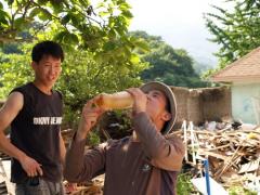 두 목수는 형제입니다. 근데 형이 시원하고 맛있는 얼음 보리차를 혼자서 먹으려 하는지 몰라도 동생이 형! 다 먹지마!!! 그러는 것 같기도 합니다.^^ 두 형제목수 현장에서 아주 가끔씩 티격 대는 풍경이 잼있습니다. 그 형제간의 우애 앞으로도 변함없이 건축현장에서 볼 수 있기를 기대합니다. 화이팅! 톰행스크 형제목수님!!