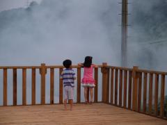 [사진]연막 소독차를 바라보고 있는 건축주 자녀 (앞)지윤이와 지승이