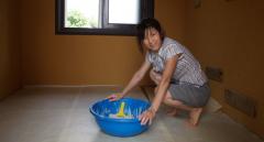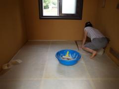 [사진]장판지를 황토바닥에 붙이는 하리하우스 건축주