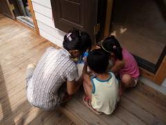 [사진]하리하우스 건축주 장판지에 풀 칠하기^^