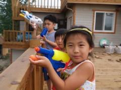 [사진]하리하우스 데크에서 지승이와 원섭이 물총 놀이