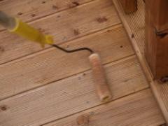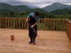 [사진]하리하우스 방부목 데크난간과 데크 바닥에 오일스테인 칠하는 건축주