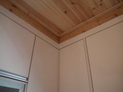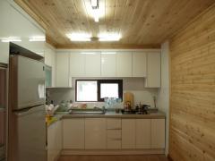 [사진]하리하우스 주방의 싱크대와 천장 향목루바와 몰딩
