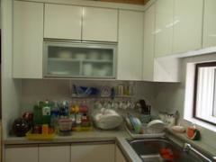 리모델링 중인 하리하우스 주방 싱크대의 구조와 자재는 평범하다. UV코팅 백색의 싱크대는 인조대리석 상판으로 된 키친시스템으로 견고하고 깔끔하게 시공되었다. 그 무엇보다 싱크대와 천장과 만나는 지점에서 향목루바와 몰딩이 하리하우스 주방의 특징이다. 천장 향목루바에서 싱크대와 만나는 지점으로 이어지는 부분을 향목으로 처리된 몰딩이 주방과 일체화된 시공으로 맞춤형 싱크대의 장점을 극대화하는 인테리어 효과를 내고 있다. 주방의 조명 또한 일반적으로 많이 사용하는 심플한 삼파장 형광등 두 개를 달아 충분한 광량의 조명효과를 내고 있는 값싸지만 실용적인 조명으로 마무리 되었다. 건축에서 무조건 재료나 가구가 비싸다고 좋은 것은 아니다. 건축주의 주거공간에 대한 철학과 취향이 반영되면 좋은 집이 될 수 있다. 하리하우스 주방은 건축주의 합리적인 삶에 대한 철학을 반영하여 시공되어 요리의 즐거움이 있는 삶에 공간으로 사랑받고 있다.