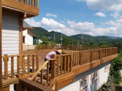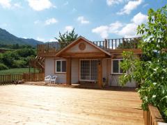 [사진]하리하우스 2층 데크와 멀리 단양의 명산 두악산(소금무지산) 전경