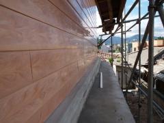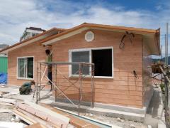 충북 제천시 남천동에 건축 중인 샌드위치판넬 조립식주택의 외장 사이딩을 건축주가 선택한 신소재 사이딩 건축재인 슈퍼보드 사이딩으로 시공했다. 건물의 외벽을 최종 마감하는 슈퍼보드 사이딩은 비닐사이딩과