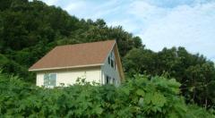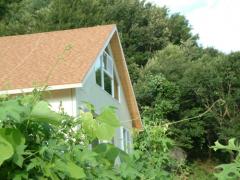 리모델링 중인 하리하우스 건축주 셋째오빠의 전원주택 학운산방이 잦은 비로인해 공사 일정이 늦어지고 있다. 해발 560여 미터의 학강산 중턱에 자리 잡은 학운산방 가는 길은 비포장 진흙길이라 현장에 차량접근이 용이하지 않은 관계로 예상보다 공사기간이 길어지고 있지만 지붕의 아스팔트슁글과 보일러 난방배관 설치와 모르타르 시공은 끝난 상태이다. 앞으로 전면 방부목사이딩과 측면의 시멘트사이딩 작업이 끝나고 내장공사인 석고보드 시공이 진행될 예정이다. 간결한 형태의 샌드위치판넬 조립식주택인 학운산방은 30여평의 건축면적에 다락방이 있는 구조로 건축되고 있다.