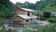 솔하우스가 철근콘크리트 골조를 완성하고 적벽돌 치장 쌓기 조적을 마무리하고 창틀과 미장 공사를 진행 중에 있다. 완공되어가는 솔하우스는 38평형 전원주택으로 내부공간이 아담한 느낌을 주는 구조로 되어있다. 앞으로 심야보일러 공사와 내부 인테리어 공사를 한 달여 진행하면 9월 중순쯤에 완공되어 건축주 가족이 고향땅에 짓는 솔하우스에 좋은친구들과 친지들이 주말을 함께 하는 솔하우스가 되리라 생각된다. 솔하우의 특징은 2층 거실에 천장 설치형 스크린을 설치하여 프로젝터로 영화를 볼 수 있는 공간이 아닐까 생각된다. 영화감상을 좋아하는 건축주가 수집해 놓은 그 많은 정품 DVD를 100인치 스크린으로 감상하는 날이 기대된다. 때로는 고화질 위성방송을 통한 스포츠 중계를 마을사람들과 함께 구경하며 작고 따뜻한 분지에 자리 잡은