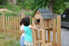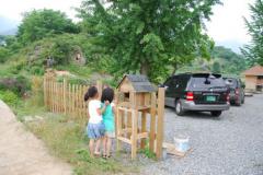 좌측부터 옆집 성희, 지윤이, 지승이 데크공사에서 남은 방부목 자투리로 만든 하리하우스 우체통 앞에서 기념촬영^^