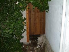 하리하우스 이웃집과 경계를 이루는 배수로를 가로질러 방부목으로 담장을 만들었다. 하리하우스 본채와 인접해 있는 이웃집 화장실 벽면과 하리하우스 벽체를 막는 방부목 담장은 조밀하게 제작하여 이웃집에서 화장실을 이용할 때 발생되는 문제를 배려하여 시공되었다. 예전에 있던 벽돌담장보다 20Cm정도 높게 설치하여 보안성을 높였고 미적인 요소도 고려하여 제작된 방부목 담장은