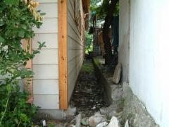 [사진]하리하우스와 이어진 이웃집 배수로 사이 방부목 담장설치 전