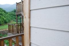 [사진]전원주택 외벽 코너와 창호 적삼목 트림(trim)
