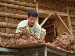 [사진]벽체에 채우기 위하여 진흙 반죽을 하는 톰행크스 동생 유병조 목수