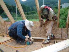 [사진]벽체와 지붕이 만나는 곳에 OSB합판으로 마감하는 톰행스크 형제목수