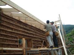 [사진]강원도 정선에서 시공 중인 귀틀집 지붕 트러스