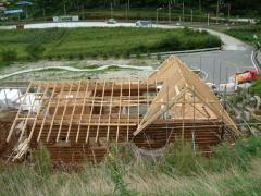 강원도 정선 귀틀집 지붕 목구조 트러스(truss) 공사
