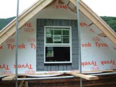 귀틀집 지붕 OSB판재 시공 후 방수시트를 깔았다. 방수시트는 기본적으로 방습과 단열기능을 포함하고 있다. 방수시트 시공 후에 지붕 끝 마감재는 가급적 빠른 시일 내에 시공해야 방수시트의 변형을 막을 수 있다. 귀틀집 다락방 창호는 모두 시스템 창호로 시공되었다. 이중유리(페어글라스)형태의 시스템창호는 미국식 목조주택에 일반적으로 사용하는 창호로서 근래에 목조주택과 펜션건축의 활성화로 그 수요가 늘어나고 있다. 시스템창호와 일반 이중창 형식의 창호는 각각의 장단점이 있는 관계로 소비자의 선호도에 따라 결정된다. 일반적인 시스템 창호는 PVC 창호와의 가격차이가 크지 않아 근래에 신축되는 주택에서도 선호하고 있지만 어떤 제품이던지 장점과 단점을 모두 갖고 있기에 소비자의 창문에 대한 선호도와 인식에 따라 제품결정과 시공이 많이 달라지는 것이 창호시공이기도 하다.