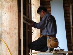 [사진]귀틀집 거실 석고보드 설치를 위한 장선 작업하는 티처 목수님