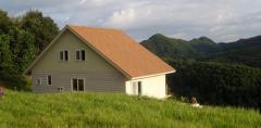 [사진]지붕 아스팔트슁글과 벽체 시멘트사이딩 시공 중인 학운산방 후 면