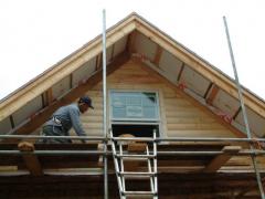 [사진]귀틀집 합각벽(合閣壁))에 로그사이딩 시공 중인 회장님 목수^^