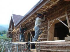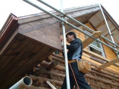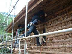 [사진]지붕처마 방부채널 시공 중인 목수들