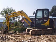조립식주택 건축현장 현대 굴삭기 555-7K