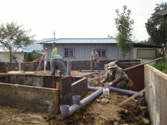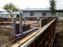 [사진]조립식주택 기초콘크리트 거푸집과 하수배관 공사