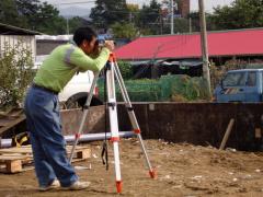 광학레벨기를 이용한 조립식주택 기초 콘크리트 거푸집 수평선 긋기 - 건축다큐21