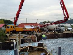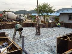 [사진]조립식주택 기초콘크리트 레미콘 타설