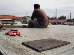 감곡현장 막둥이 목수 한결이 아빠의 뒷 모습이다. 조립식주택 형강 기둥이 서 있을 자리에 철판같이 튼튼하고 단단한 21세기 대한민국 생활건축 현장의 주역이다. 오후 참으로 간짜장을 먹고 잠시 휴식을 취하는 21세기 영맨목수 화이팅!
