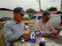 [사진]감곡현장에서 박카스를 마시는 회장님 목수와 티처 목수님