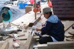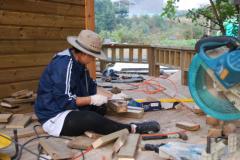 [사진]경북 성주 숲속의 하우스 데크 기둥재 재단 끌질하는 박목수님