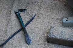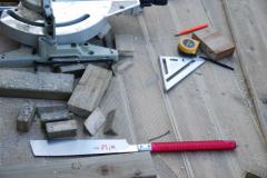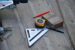 [사진]방부목 데크공사 현장의 측정도구와 전동공구