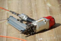 [사진]방부목 데크공사 현장의 네일건