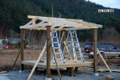 경북 성주 전원주택 숲속의 하우스 정자 박공지붕 구조목 골조 시공 현장 - 건축다큐21