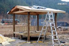경북 전원주택 정자 방부목 난간대와 방수시트 시공 현장 - 건축다큐21