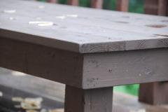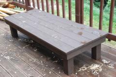 단양 전원주택 데크 진입로 확장 공사후 여유자재로 만든 키낮은 야외테이블이다. 데크위에서 평소에는 벤치로 사용하고 삼겹살이라도 구워 먹는 날에는 야외테이블로도 사용하는 다용도 테이블이다. 그동안 같은 모양으로 세개의 야외테이블을 만들었다.단양 하리하우스 데크위에 놓여있는 야외테이블, 성주 숲속의 하우스 데크위의 야외테이블 그리고 단양 전원주택 데크위에 놓여있는 현재의 야외테이블이다. 4X4방부목으로 다리를 만들고 투바이포로 틀을 짜고 상판을 만들었다. 그렇게 데크위의 키낮은 야외테이블은 건축현장의 추억이 되었다.