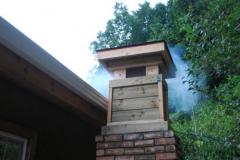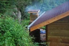 굴뚝 상부골조에 방부채널사이딩을 붙이고 지붕은 방수시트와 본채지붕과 같은 흑적색 이중그림자 아스팔트슁글로 시공했다.
