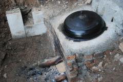 아궁이에서 불넘이의 높이가 70Cm정도로 높다. 전통적인 방식으로 아궁이와 구들이 시공되었다. 불넘이 개자리는 만들지 않고 고래 개자리와 굴뚝 개자리는 시공했다. 장작에 불을 지피니깐 불넘이를 넘어 고래로 들어가는 불소리가 경쾌하게 들려왔다. ㅋ 성공이다!
