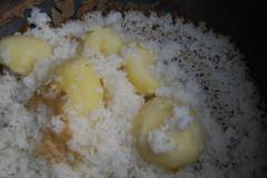 30분쯤 후에 열어 보았는데 밥물이 약간 부족하여 설익은 느낌이 들었다. 감자는 속까지 안 익은 것 같아서 물을 보충하고 10분정도 더 익히는 편법?을 동원했다^^