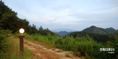 도토리색 오일스테인을 도색하였다. 400MM정도는 좌대를 지지하기 위하여 땅속으로 묻는 방법으로 시공했다. 가로등에는 동작감지 센서가 내장되어 야간에 진출입시 가로등이 점등된다. 사진 가운데 저 멀리 희미하게 보이는 산이 백두대간이 북에서 남으로 이어져 내려오다 소백산으로 이어주는