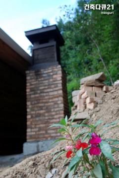 온돌구들 황토방 파벽돌 조적굴뚝과 봉숭아꽃 - 건축다큐21