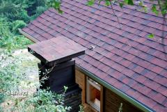 [사진]온돌구들 방갈로 굴뚝과 흑적색 이중그림자 슁글지붕 - 1000x669