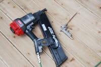 [사진]방부목 데크공사 현장의 센코 네일건과 에어건 - 1000x669