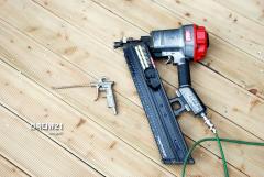 방부목 데크공사 현장의 센코 네일건과 에어건 - 건축다큐21