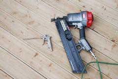 방부목 데크시공 현장의 목수 개인공구들 - 건축다큐21