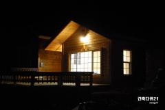 목구조 온돌구들 방갈로 우측면 야경 - 건축다큐21