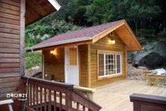 전원주택 온돌구들 황토방이다. 목구조 방식으로 시공되고 전통적인 온돌구들방식으로 시공한 전원주택의 별채 이다. 구조목으로 골조를 세우고 내외부벽체에는 OSB보드, 인슐레이션, 열반사단열재, 석고보드가 시공되고 내부 마감재로 루바와 황토핸디코트로 마감된 방갈로이다. 현재 방부목 데크시공이 완료되고 부엌의 지붕공사가 진행 중이다. 지붕은 흑적색 이중그림자 슁글이고 외벽은 방부채널사이딩으로 마감되었다. 창호는 시스템창호가 설치되고 현관문은 기밀성이 좋은 캡스톤도어로 시공되었다.
