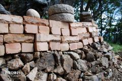 온돌구들 황토방 방갈로 시공현장의 석축이자 화단이다. 파벽돌은 온돌 황토방 굴뚝을 조적하고 남은 자래로 돌석축위로 쌓아 올렸는데 인공미와 자연미가 조화롭다. 마치 단양 온달산성과 수원화성의 융합이 아닐까 생각나기도 했다. 전원주택 시공현장에는 자연의 건축자재들이 많이 있다. 돌 나무 잡초 그리고 푸르른 하늘과 시냇물... 그 중에서 흙과 돌을 잘 이용하면 색다른 조경의 멋을 한것 뽐내는 전원주택을 만들 수 있지 않을까 생각된다.